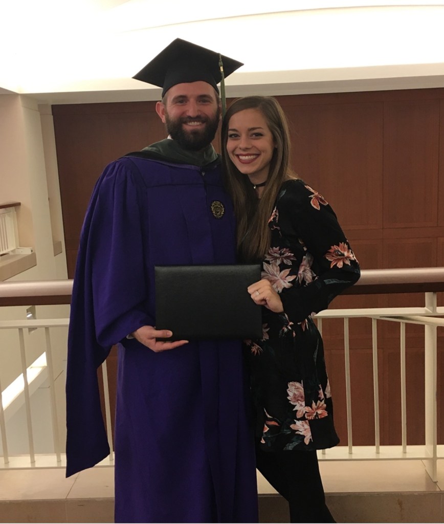 Fast forward to my senior year. I had finished my internship that summer and was applying to OT schools before graduating in spring of 2014. During the winter quarter my father was in an accident and suffered a traumatic brain injury. Our family’s life was turned upside down. My dad did rehab in several places in Shreveport and then in New Orleans at Touro, a brain injury specialty hospital. My professors and close friends from the Kines department helped carry me through this difficult time in my life. When they say “Kines Family” they mean it. I could not have made it without them during those extremely stressful times. By God’s grace and mercy my dad returned home and was even able to attend my graduation in Spring of 2014.