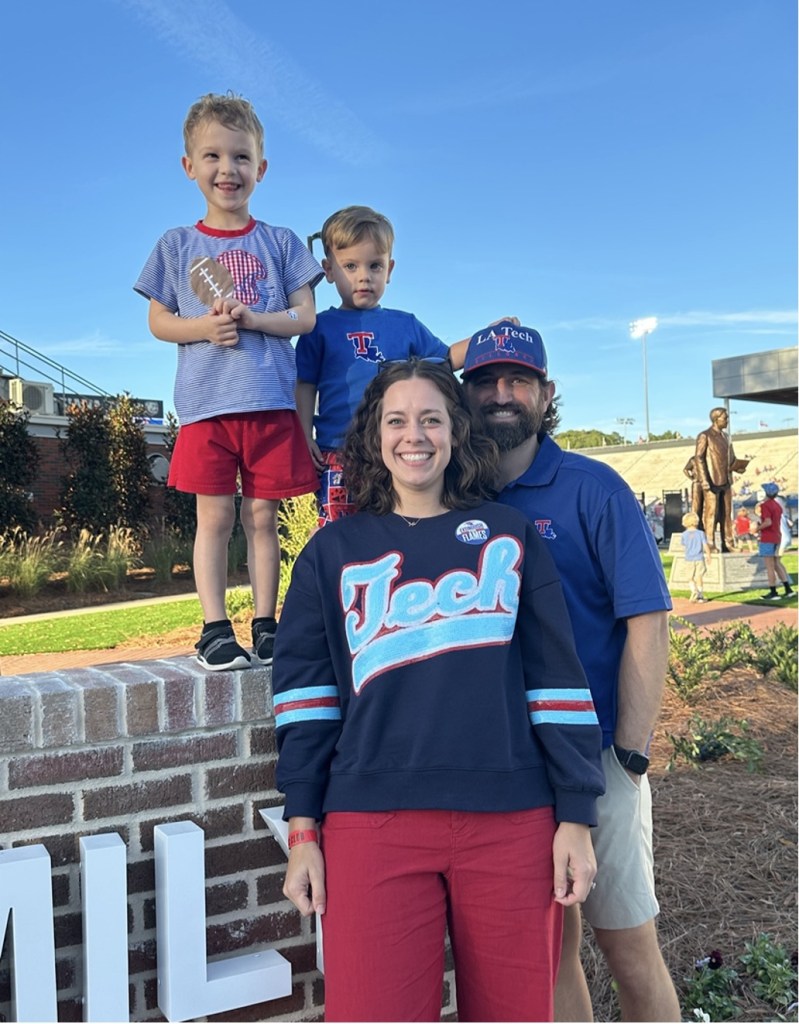 Being back at Tech is the dream I never knew I had. Louisiana born but raised in North Carolina – my family continued to loyally support Tech. My dad graduated with his bachelors and masters from Tech. He was a manager for the Louisiana Tech Bulldogs basketball team under Coach Scotty Robertson. Coach Robertson is the reason my dad switched from engineering to teaching and coaching high school basketball. With the impact from many Louisiana Tech legendary greats such as Coach Leon Barmore, Coach Tommy Joe Eagles, Coach Robertson, and more, my dad succeeded during his times at Cedar Creek, Dubach, Quitman, East Ascension, and lastly in Highlands. Fun fact: Mrs. Boyd attended one of my dad’s summer basketball camps as a camper herself!