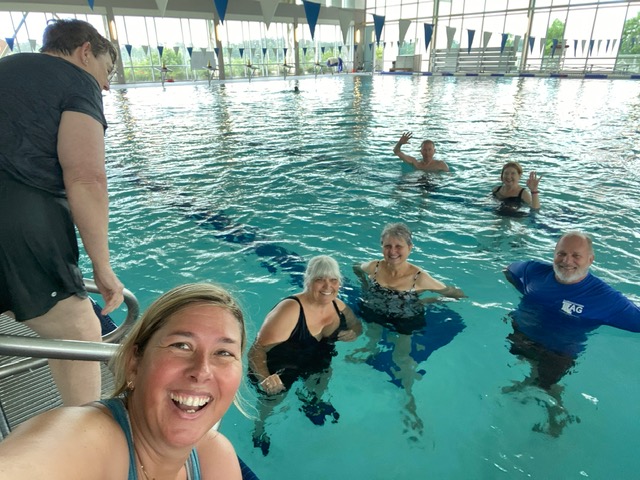 After spending 10 years in Texas, getting married and having two children my husband and I decided that it was time to move home. My husband took a position in the School of Design here at Tech, teaching in the architecture program. My background in teaching opened up the door for me to take a Special Education position at Glen View Elementary. After only a few years I knew that I was in the wrong place for my talents and passions. Luckily for me I had developed a relationship with Mrs. Boyd and her parents while assisting with her chair exercise class during my graduate school days. This relationship and some great timing opened the door for me to use the knowledge I had gained while working in the aquatics field in Texas and teaching special education to teach in the Kinesiology department.